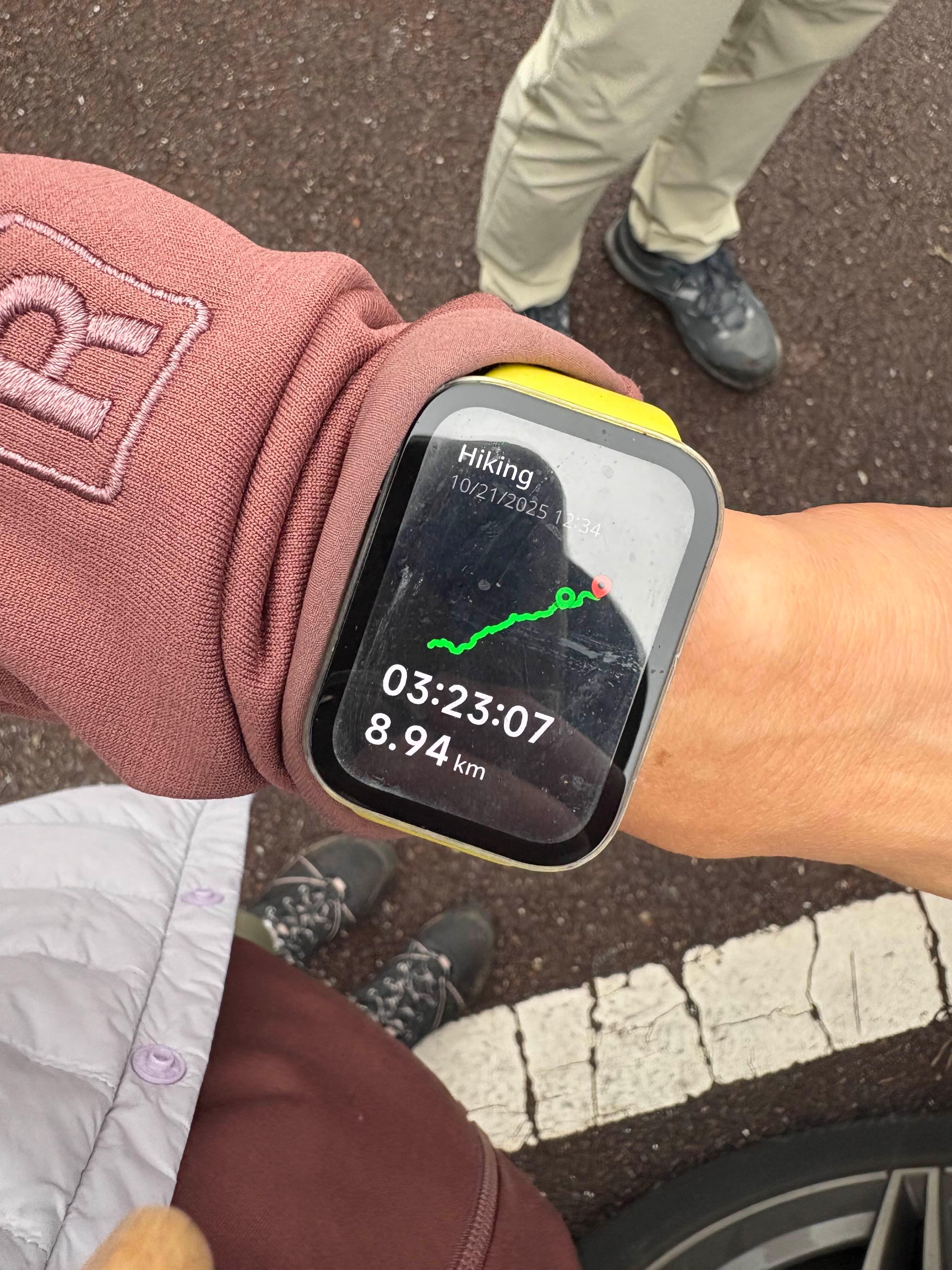 미끄러져 두 번이나 넘어졌지만,