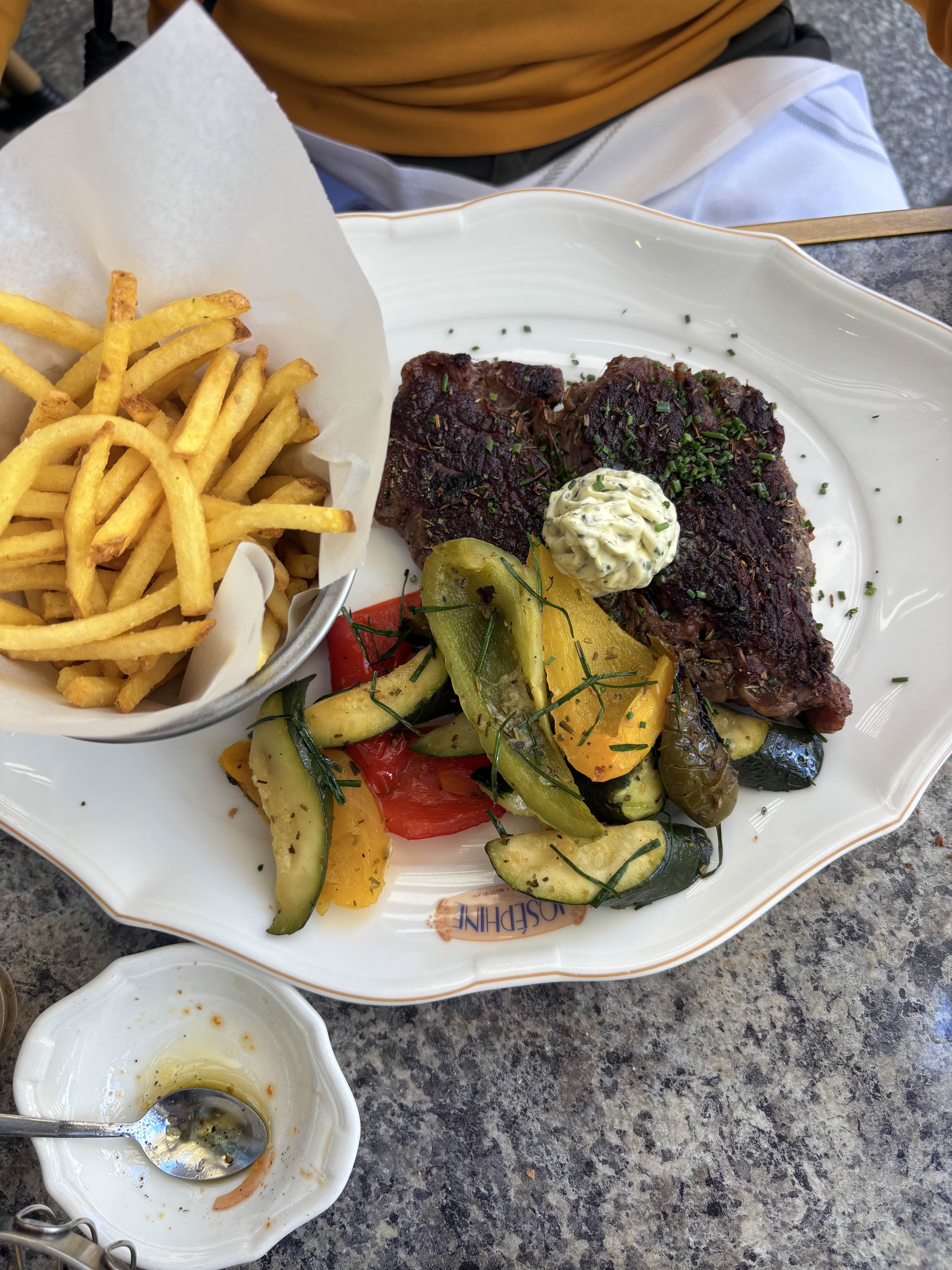 몽블랑 아래 조용한 마을, 샤모니(Chamonix)의 햇살 가득한 테라스에서 조세핀(Josephine) 레스토랑에 자리를 잡았다.