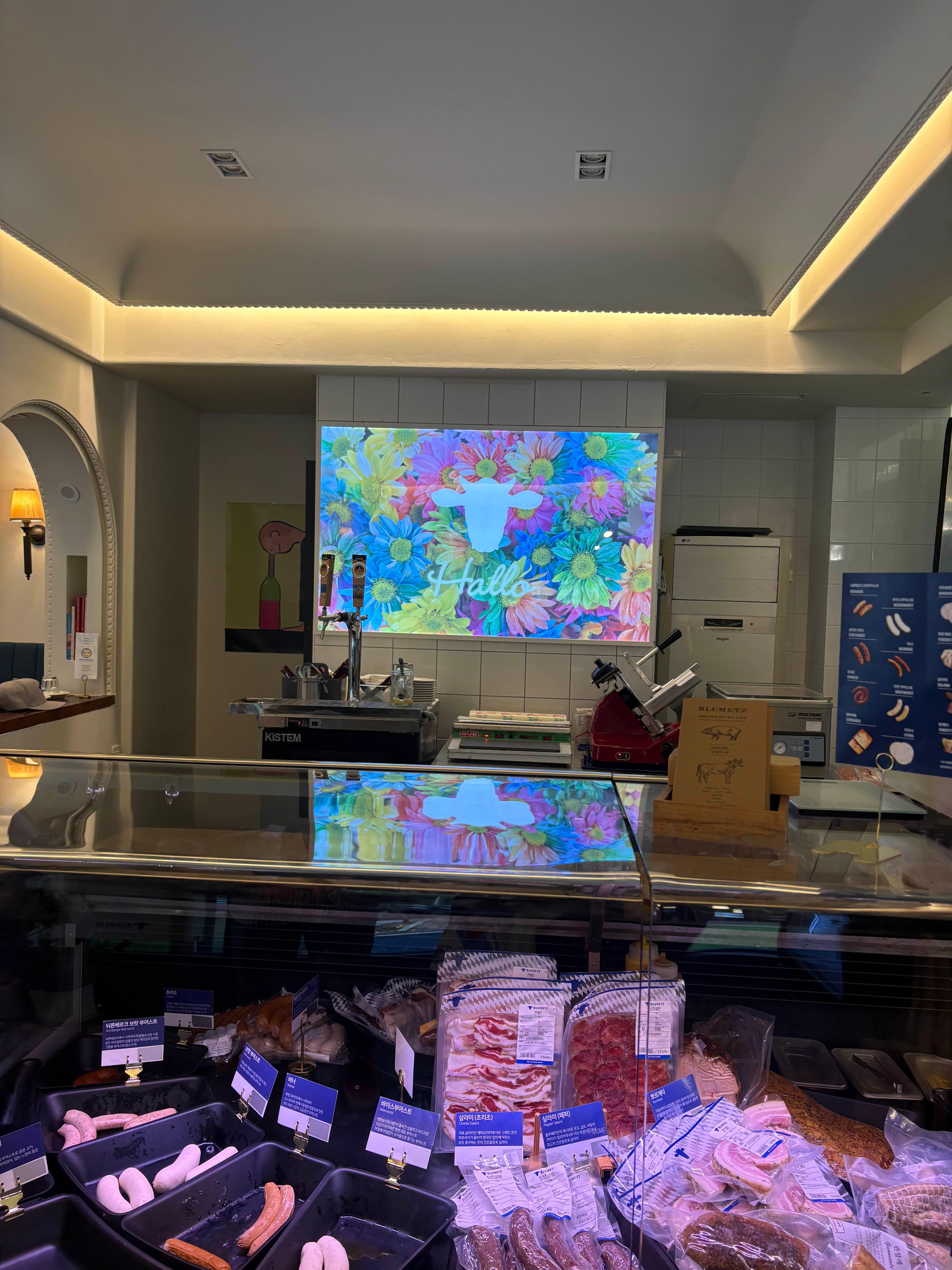 문을 열면 유리 진열대 안에 가지런히 놓인 햄과 소시지들이 눈에 띈다.