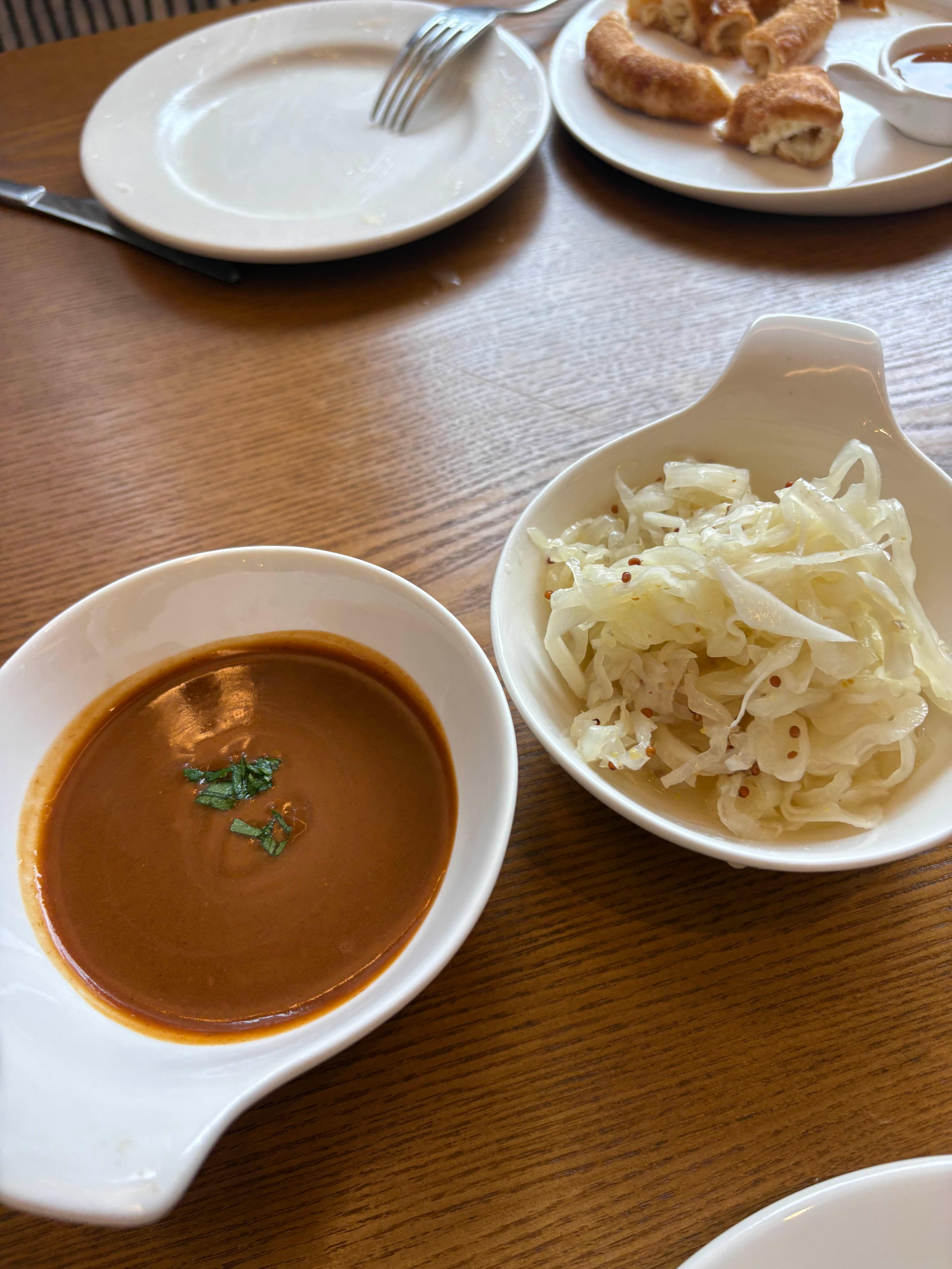 정성스러운 독일식 고기 요리와 빵을 함께 즐기는 시간이었다.