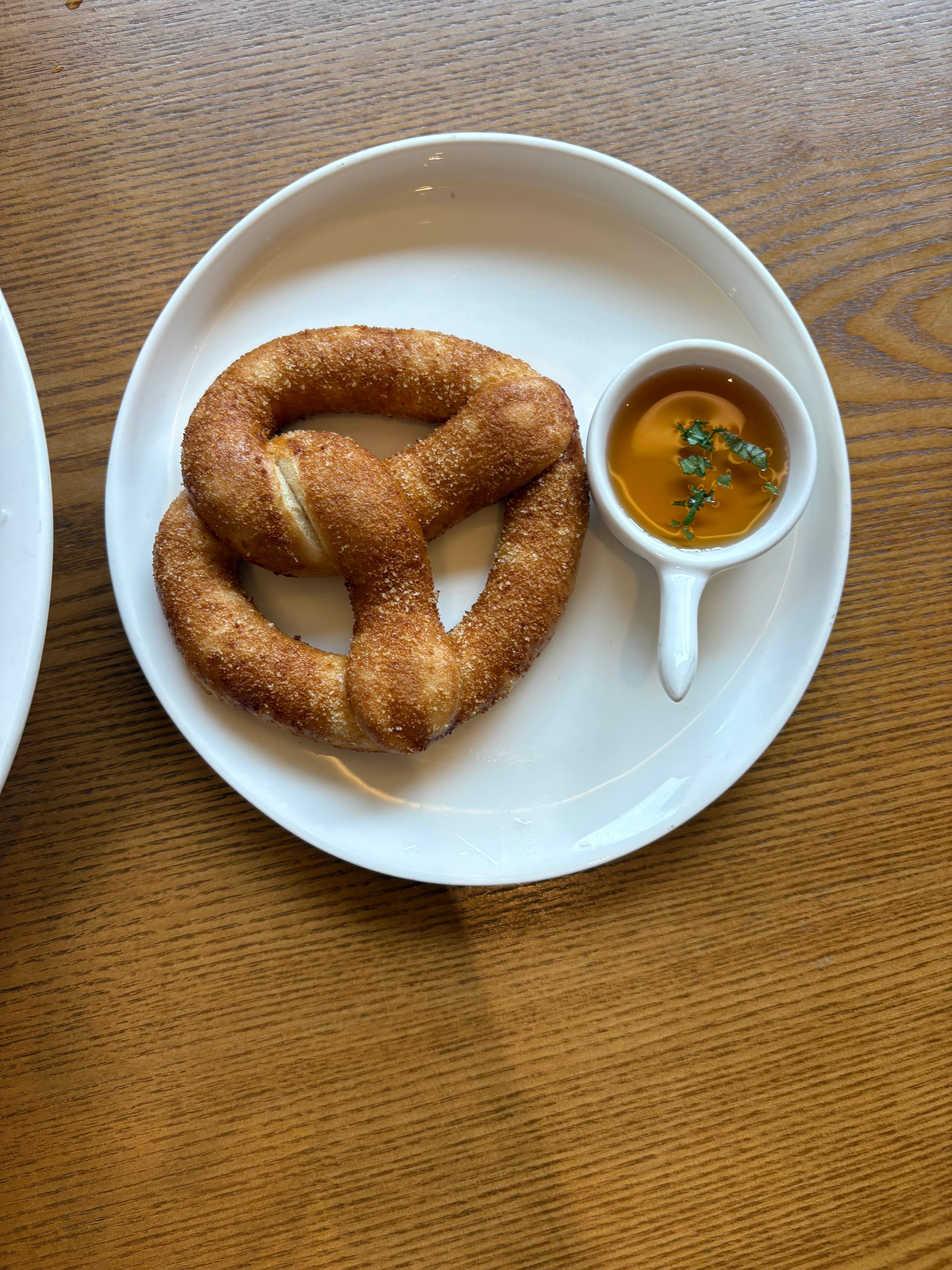부드러운 크림치즈와 쫀득한 프레첼이 조화롭게 어울린다.