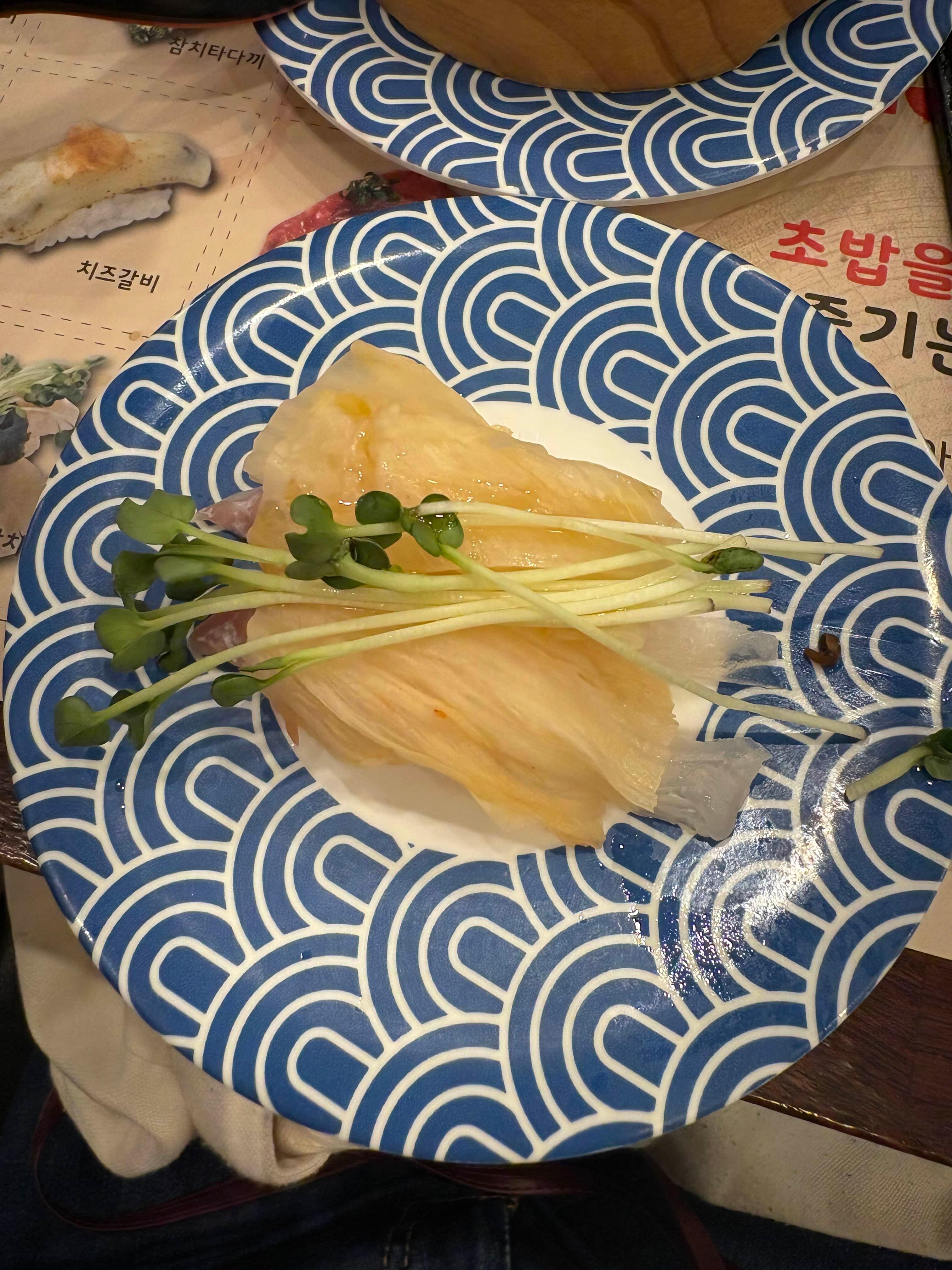 도톰하게 썰린 회가 올라가서 씹는 맛이 훌륭했어요. 무순이 곁들여져 느끼함 없이 담백합니다.