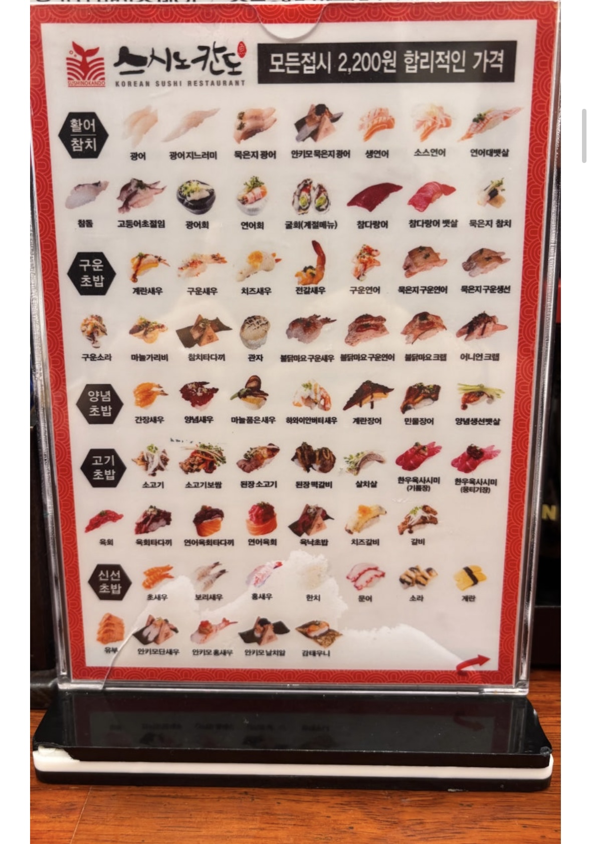 스시노칸도의 가장 큰 매력은 바로 모든 접시가 2,200원 균일가라는 점!