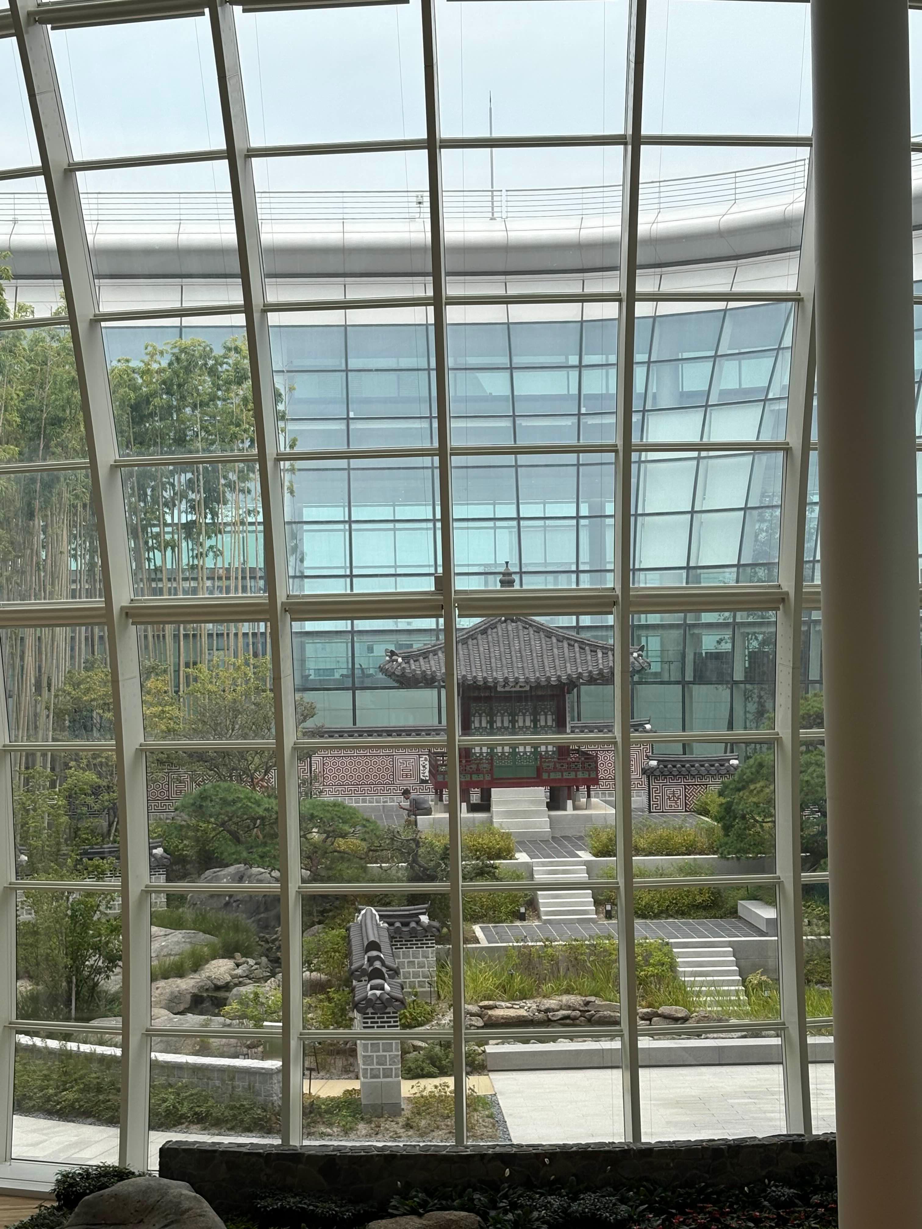 고즈넉한 기와지붕과 단정한 정자가 현대적인 유리 건축과 함께 자리해 있는 모습이 묘하게 이질적이면서도 멋스러웠다.