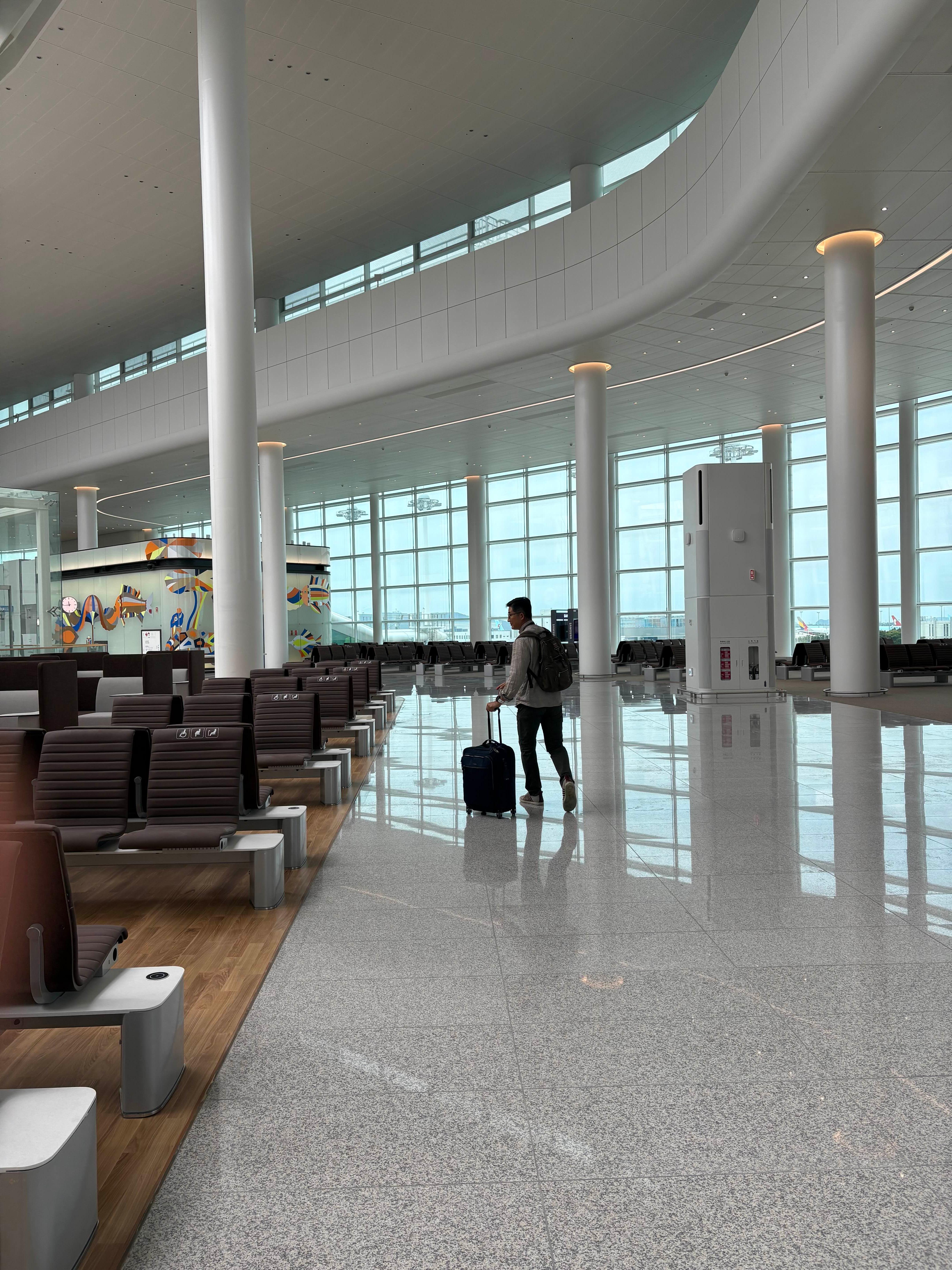 여행을 떠나는 설렘 속에서도 이 공간이 아직은 비어 있다는 사실이, 공항의 새로운 시작을 준비하는 숨 고르기처럼 느껴졌다.